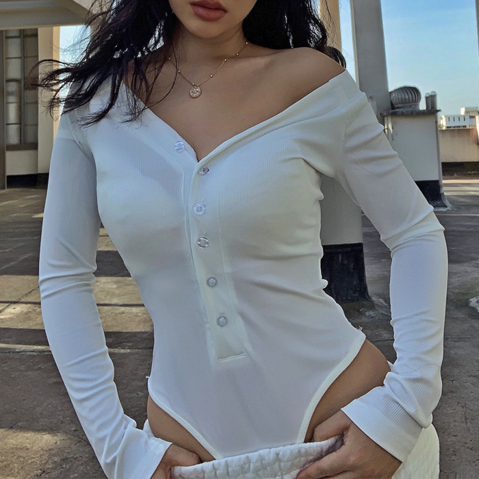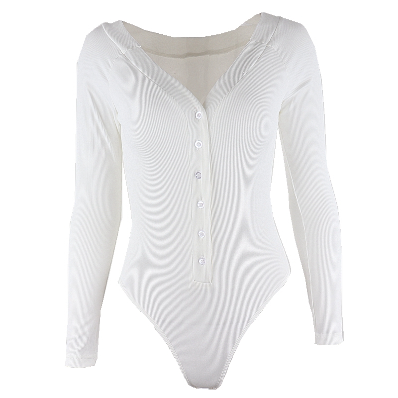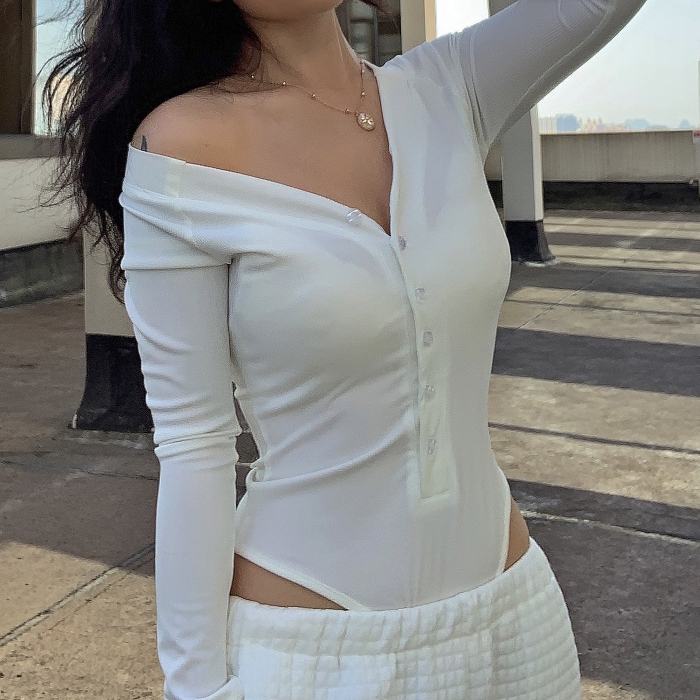INS solid color ribbed slim sexy V-neck bottoming bodysuit