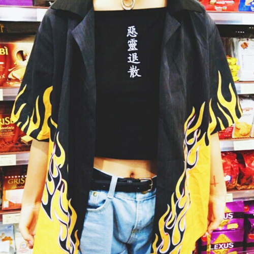Free Shipping-UNISEX FLAME KIMONO