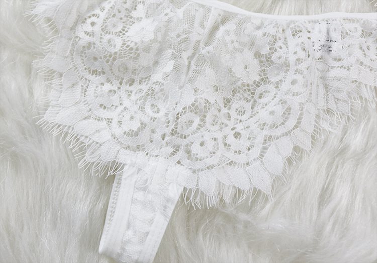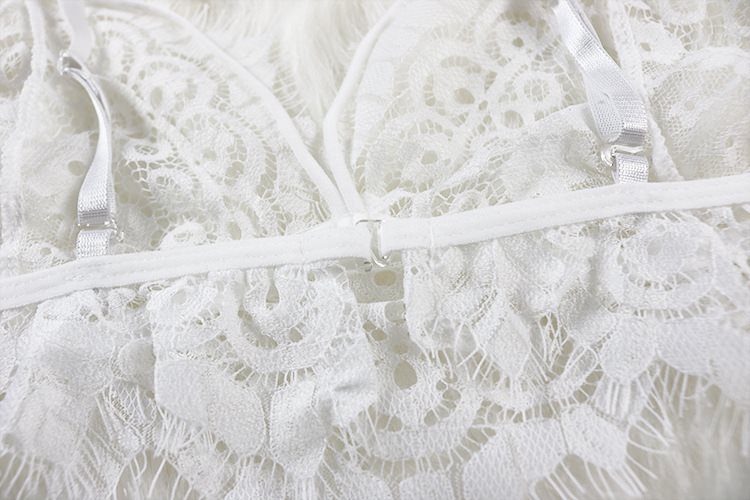 Get flirty in the Sahara Long Line Bralette, made with nude, see-through, mesh fabric cups with white eyelash lace over-all placements, for a fun and flirty look. It features adjustable nude shoulder straps with gold detailing and a hook back closure. Perfect to pair with the Sahara High Waist Panty. This product is delicately handmade with love and care. Gentle hand-washing only is advised. Please see our SIZE GUIDE link on the left to see the right size for you. Please note that we do not accept returns or exchanges so please make sure you are choosing the correct size!