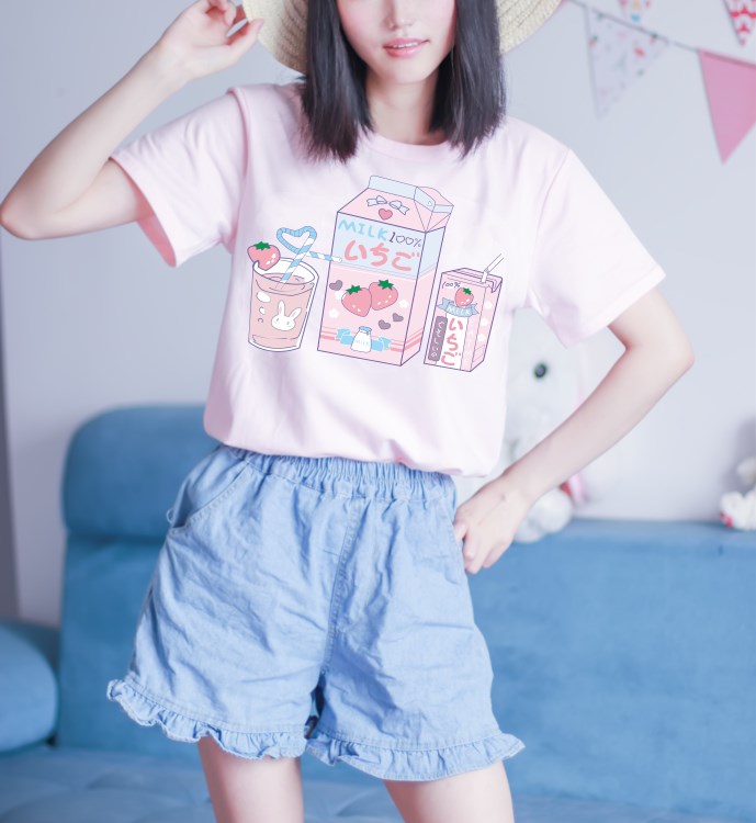 STRAWBERRY MILK ANIME TEE IN WHITE