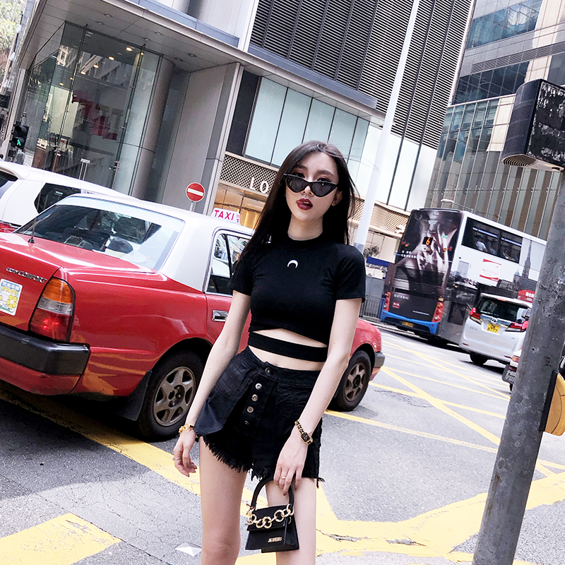 Black Gothihc Moon Print Crop Top