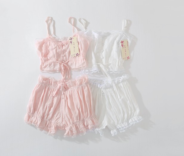Color:white.pink. Size:S.M. Size S: Vest length:28cm/10.92".Bust:88cm/34.32".Waist:82cm/31.98". Shorts length:28cm/10.92".Waist:66-76cm/25.74"-29.64".Hip:94cm/36.66". Size M: Vest length:28cm/10.92".Bust:95cm/37.05".Waist:86cm/33.54". Shorts length:29cm/11.31".Waist:70-80cm/27.30"-31.20".Hip:98cm/38.22".