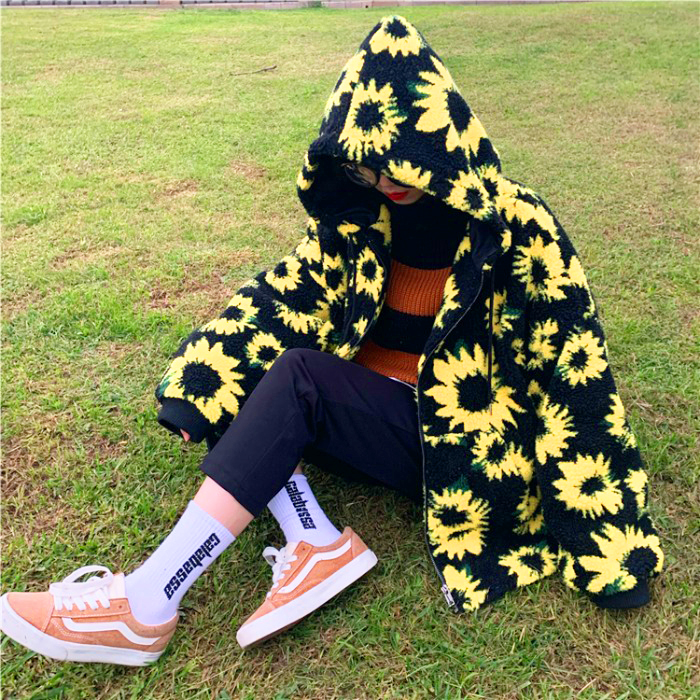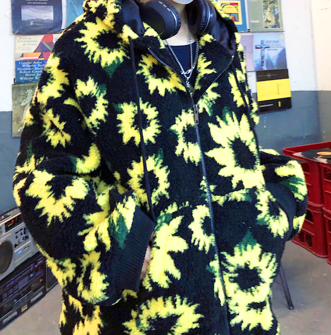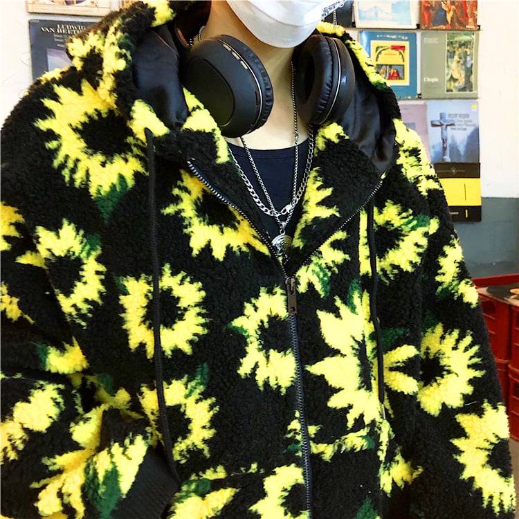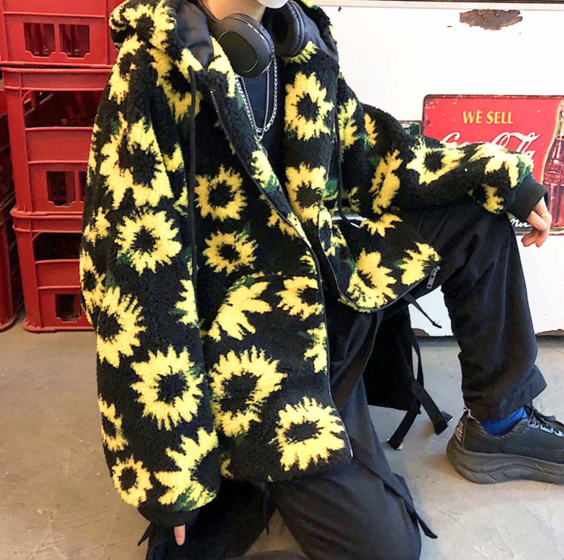 Free Shipping-SUNFLOWER FLEECE JACKET
