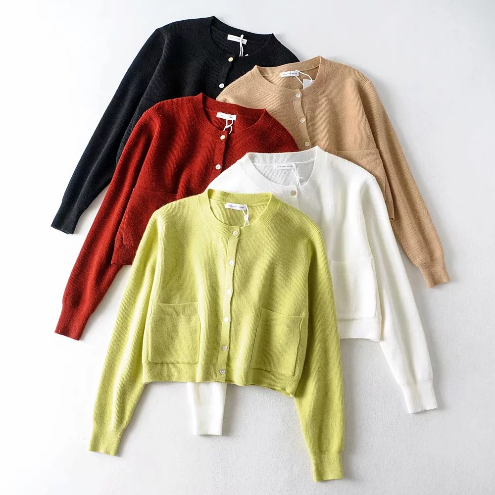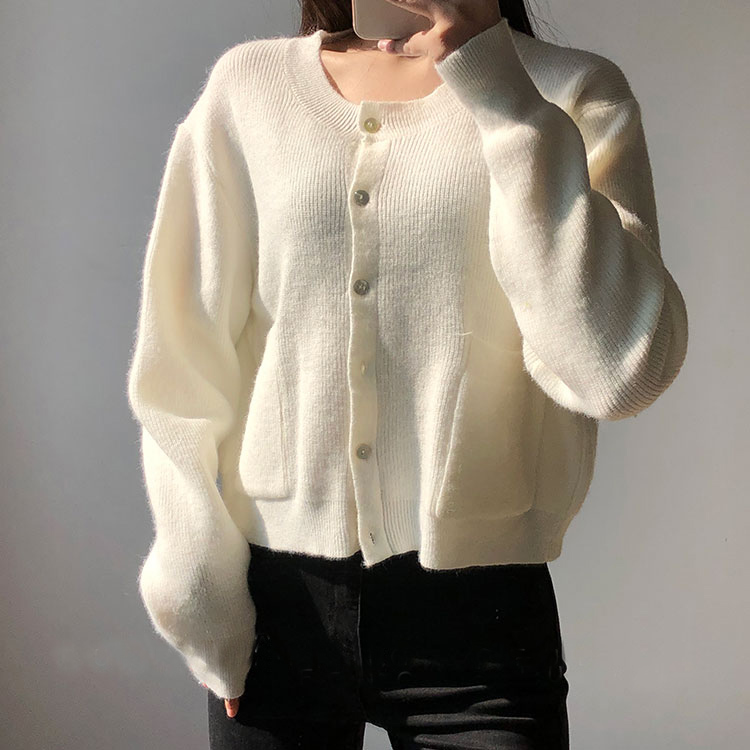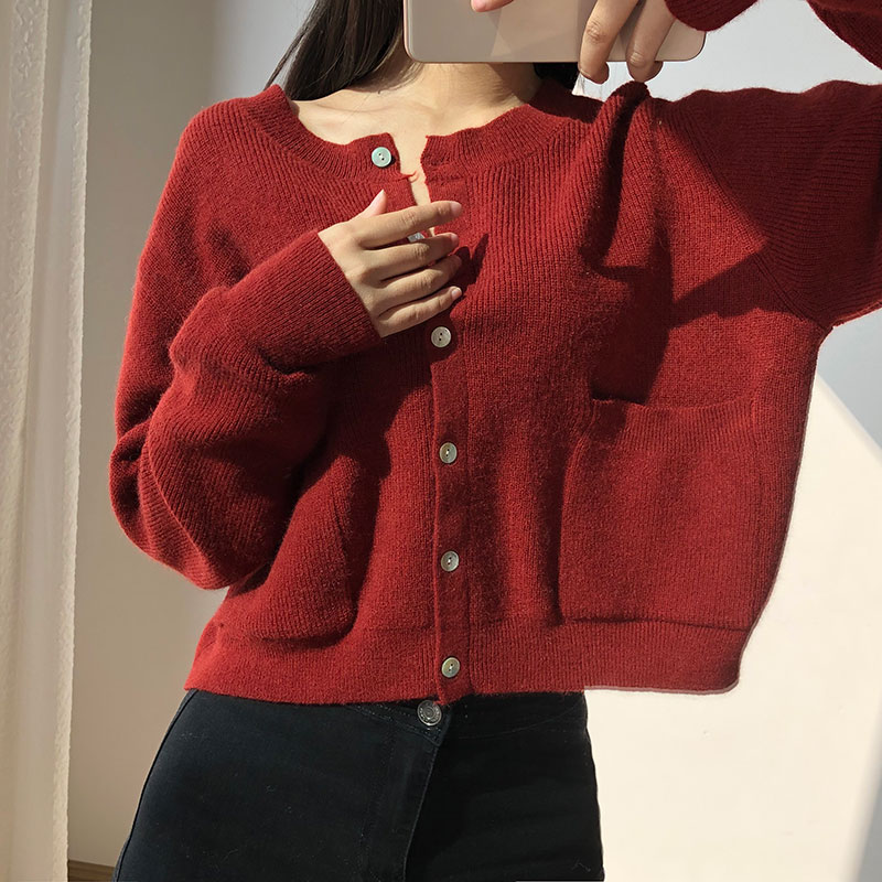 Retro Double Pocket Jacket Single Breasted Sweater Lazy Short Coat
