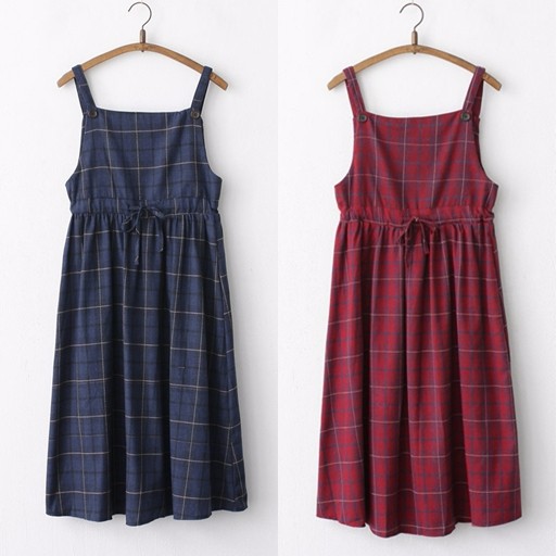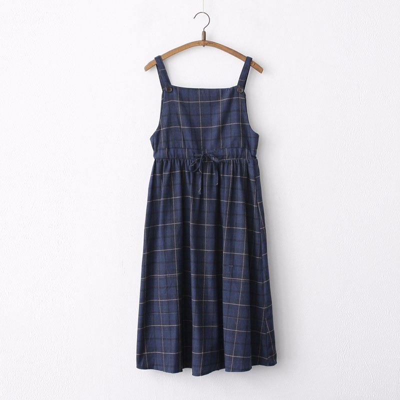 Cute Japanese Casual Pleated Plaid Strap Dress