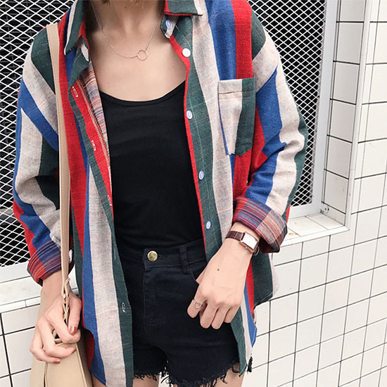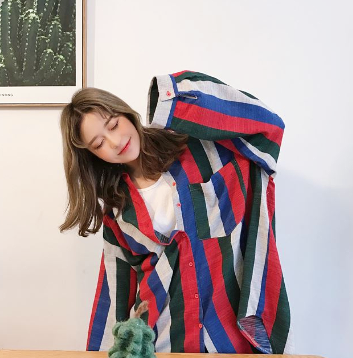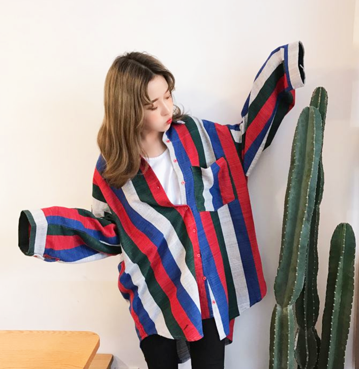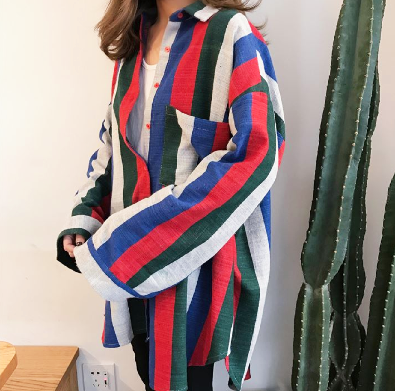 OVERSIZED RETRO COLOR STRIPE SHIRT