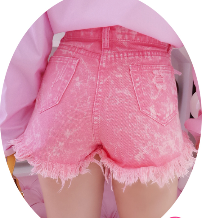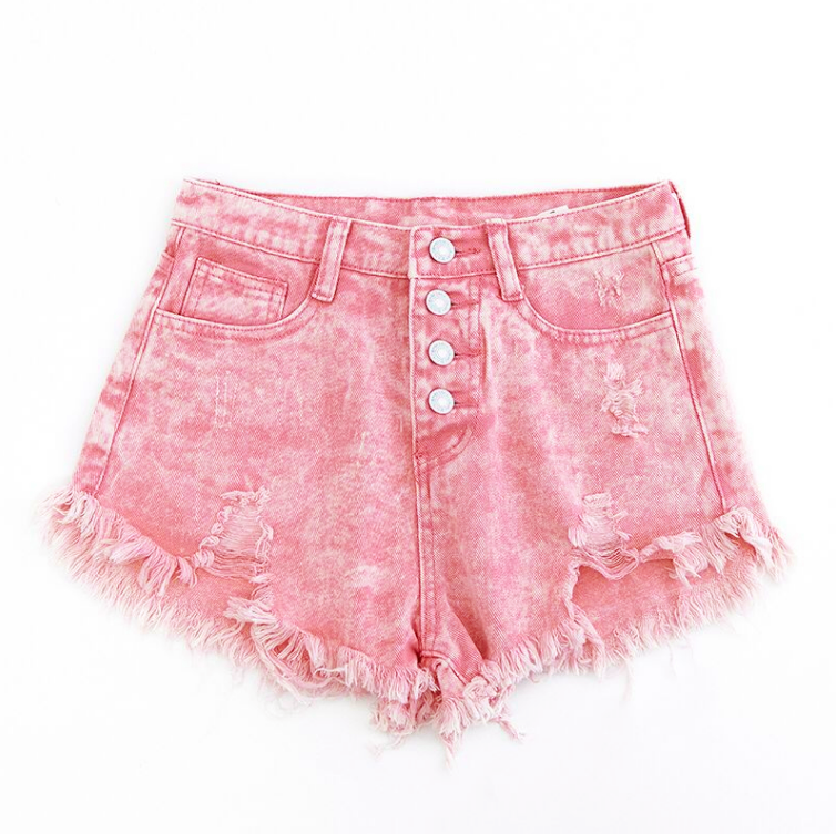 Pastel Pink High Waist Ripped Denim Shorts