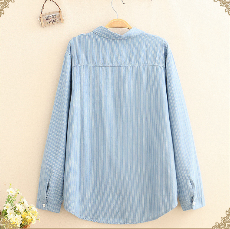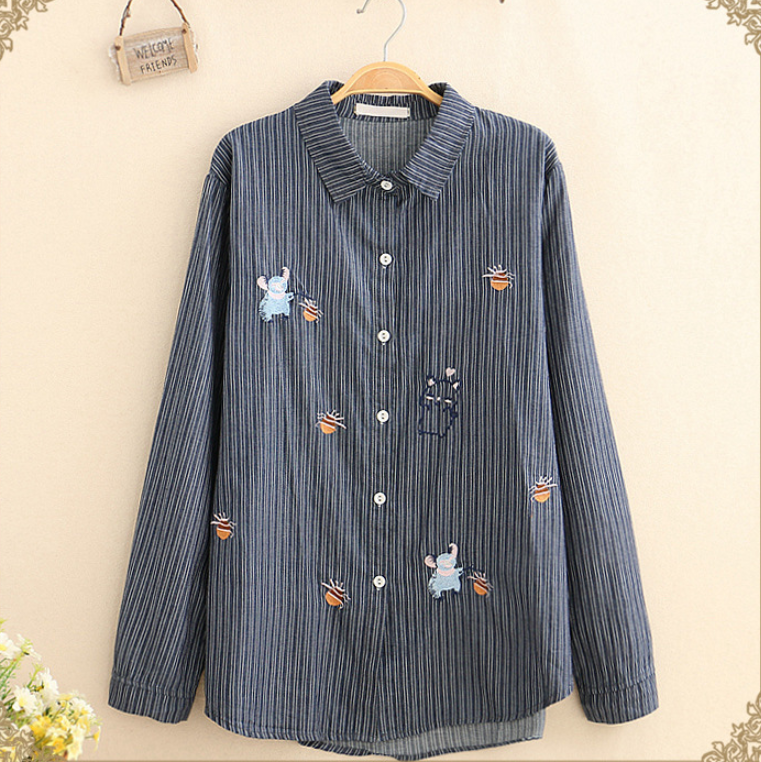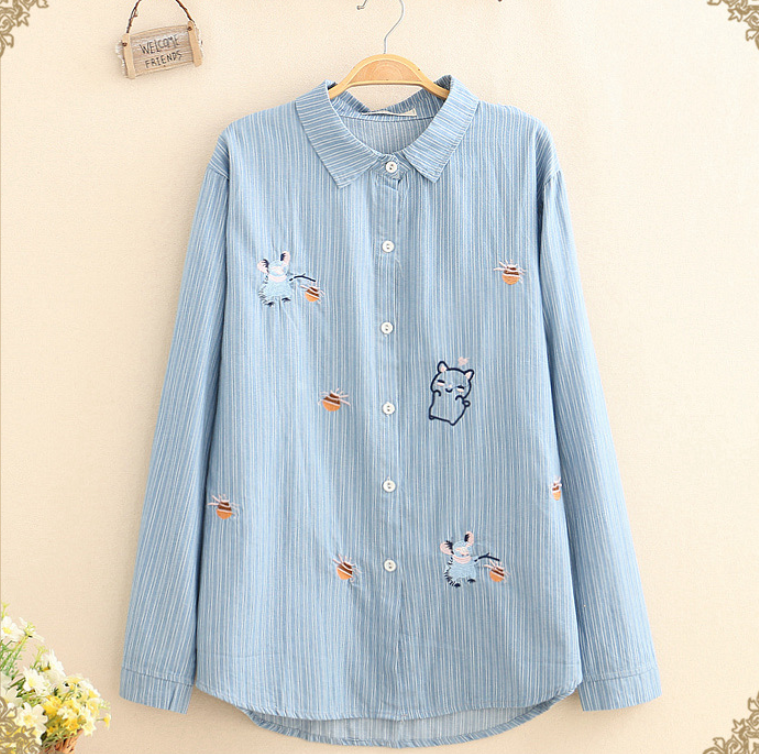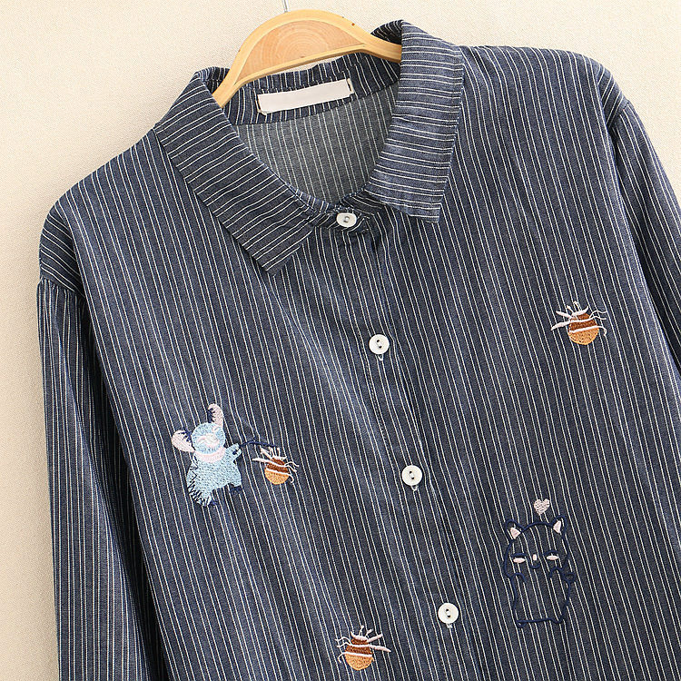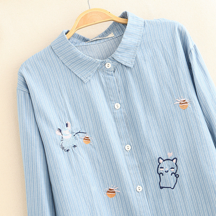 Harajuku style little bees embroidery stripe blouse shirt#PR861