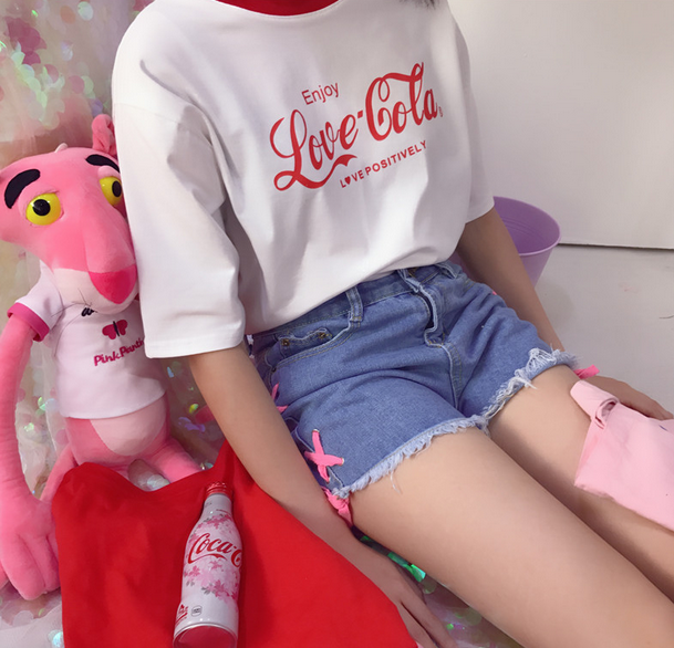 free shipping-LOVE GOLA TEES-pink&white