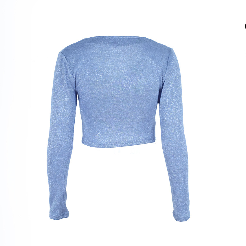 Retro Pearl Button Deep V-neck High Waist Short Silver Silk Knit Cardigan