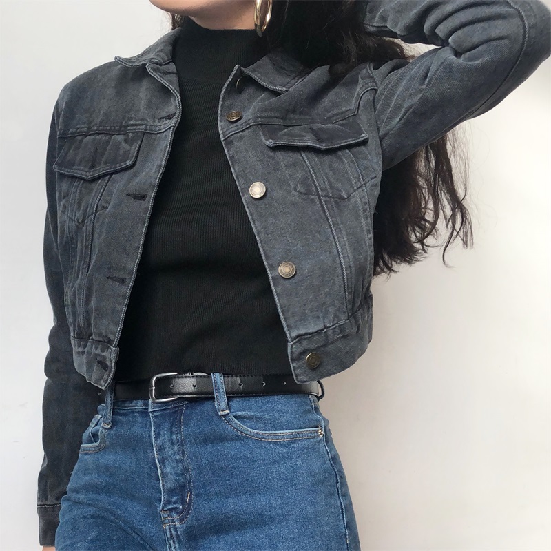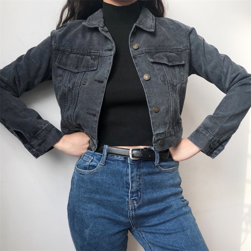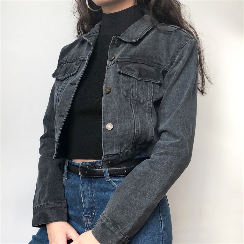 Vintage Slim Short Gray Black Denim Jacke