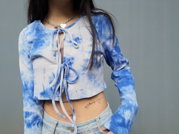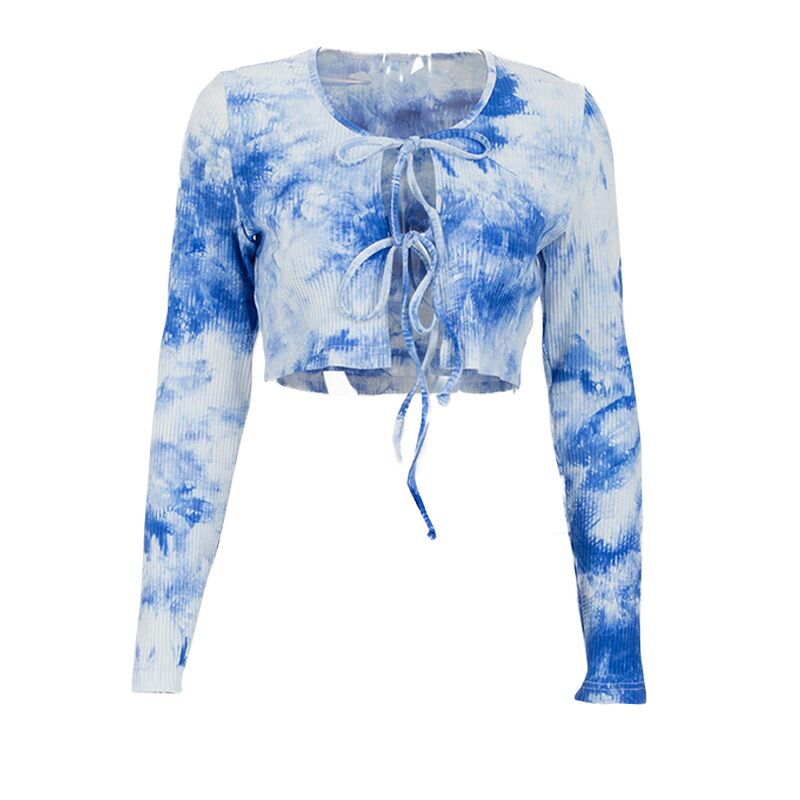 Tie-dye lace-up long-sleeved shirt