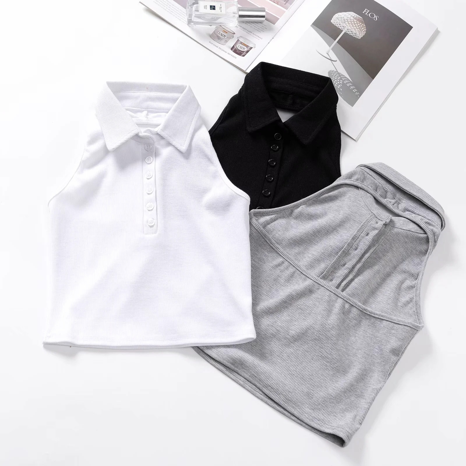 Small lapel halter short vest sexy leaky umbilical sleeveless top