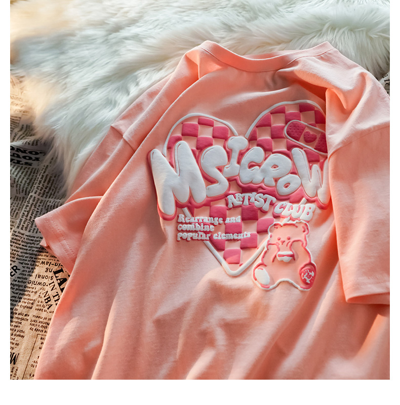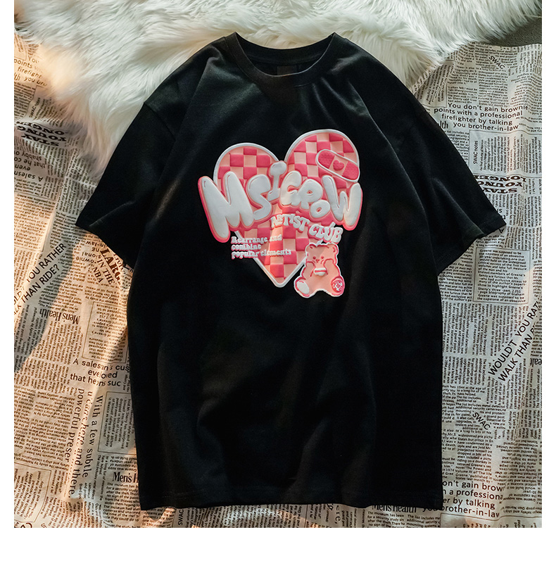Harajuku Checkerboard Love Bear Men's and Women's Short Sleeve T-Shirt